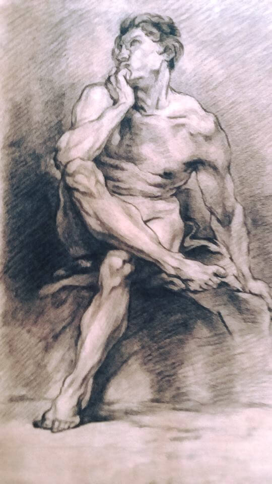 Master Copy (attribution unknown) - Thought to be 17th century artist Charles Le Brun. Circa 2013 Charcoal on antiqued paper